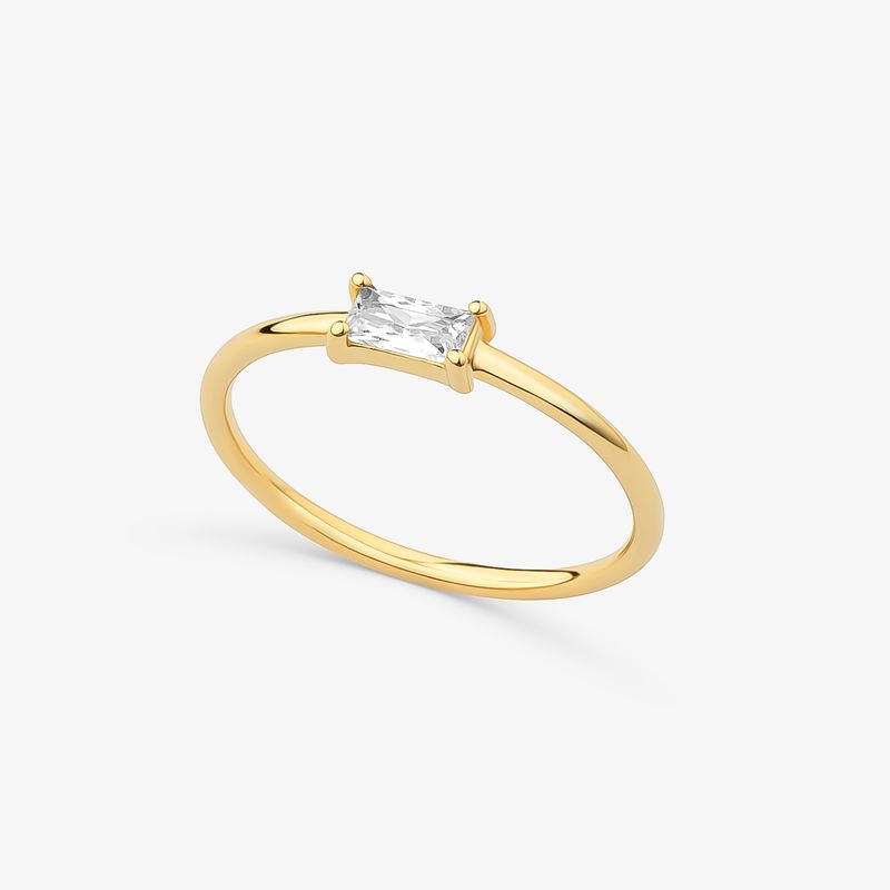 Anel com Zircônia em Prata 925 com Banho de Ouro Amarelo 18k