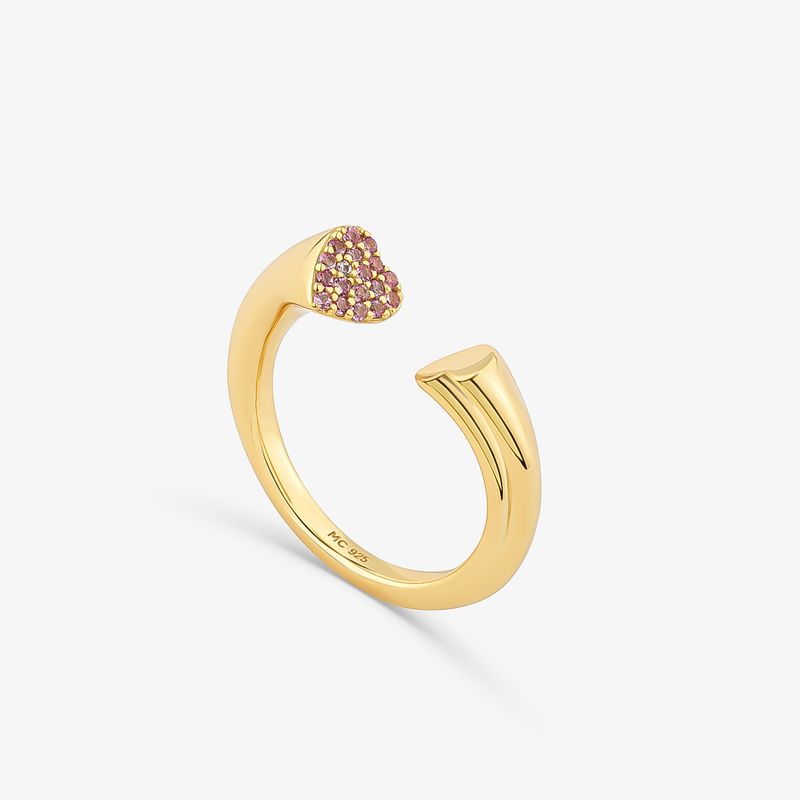 Anel Coração Cravejado em Prata 925 com Banho de Ouro Amarelo 18k