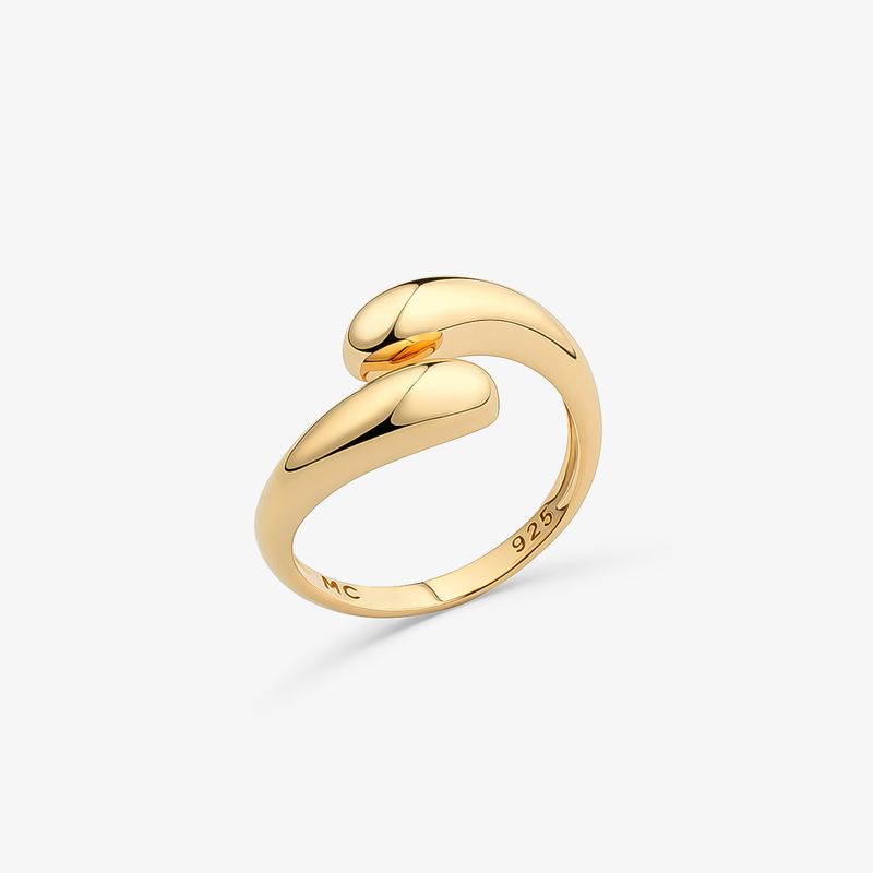 Anel Arredondado Duplo em Prata 925 com Banho de Ouro Amarelo 18k