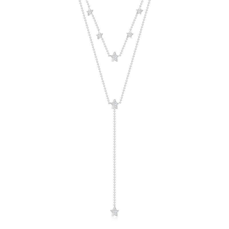 O colar duplo com estrelas e Zircônias em Prata 925 faz parte da coleção Jolie Estelar, inspirada na energia e singularidade das estrelas.